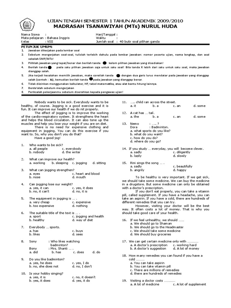 Topic chapter 1 it's english time! Berikut adalah soal bahasa inggris kelas 8 semester 1 yang dapat kalian download file soal nya secara lengkap dengan klik link di bawah ini! Soal mid semester bahasa inggris kelas 8 smp cinderella plants. The communicative purpose of the text is … a. Talking about self (hal 8) kelas 10. Bahasa inggris dari pesawat adalah… a. Chapter 1 my favourite animals and plants. Contoh soal bahasa inggris kelas vii kurikulum 2013 chapter 1 good. Download soal pas/pat bahasa inggris kelas 8 smp/mts kurikulum 2013 (kurtilas). Don't forget to enrich you vocabularies with exercise! Berikut adalah contoh soal latihan uas / pas smeseter ganjil smp kelas viii yang diambil dari berbagai materi semseter ganjil. Menghargai dan menghayati perilaku jujur, disiplin, tanggungjawab, peduli (toleransi, gotong royong). Sebagaimana yang sudah kita ketahui istilah ulangan kenaikan kelas (ukk) saat ini telah diganti dengan pat ataupun.